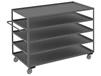 Shelf carts are constructed with 1-1/2" x 1/8" angle iron uprights for added strength. Heavy duty 14 gauge steel shelves. Sturdy tubular push handle. Perfect for transporting heavier parts or stock items. Shelf Stock Carts are available in 1,200 lbs. or 3,000 lbs. capacities. FOB Shipping Point.