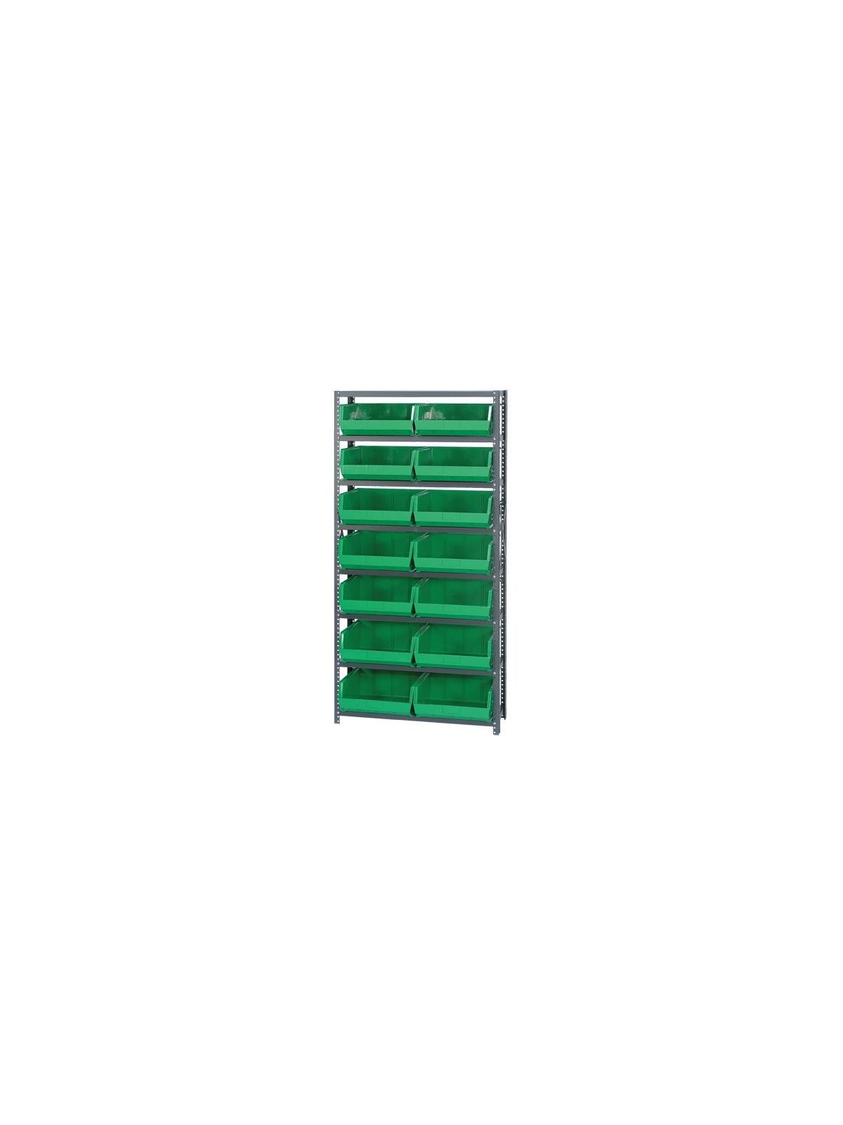 Sold complete with shelving and bins. 350 lb. capacity per shelf. Bins available in Yellow, Blue, Red, Green, Ivory and Black. FOB Shipping Point.