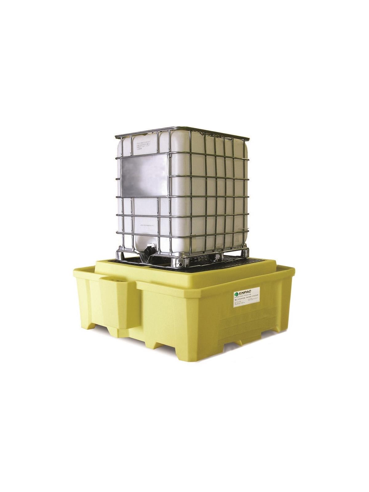 The Black Diamond and ENPAC IBC Pallets fit more than 99% of all IBC units and boasts a 385 gallon sump capacity. Featuring an integrated 5-gallon pail holder, this unit is the most economical, one-piece, polyethylene IBC Pallet on the market. FOB Shipping Point.