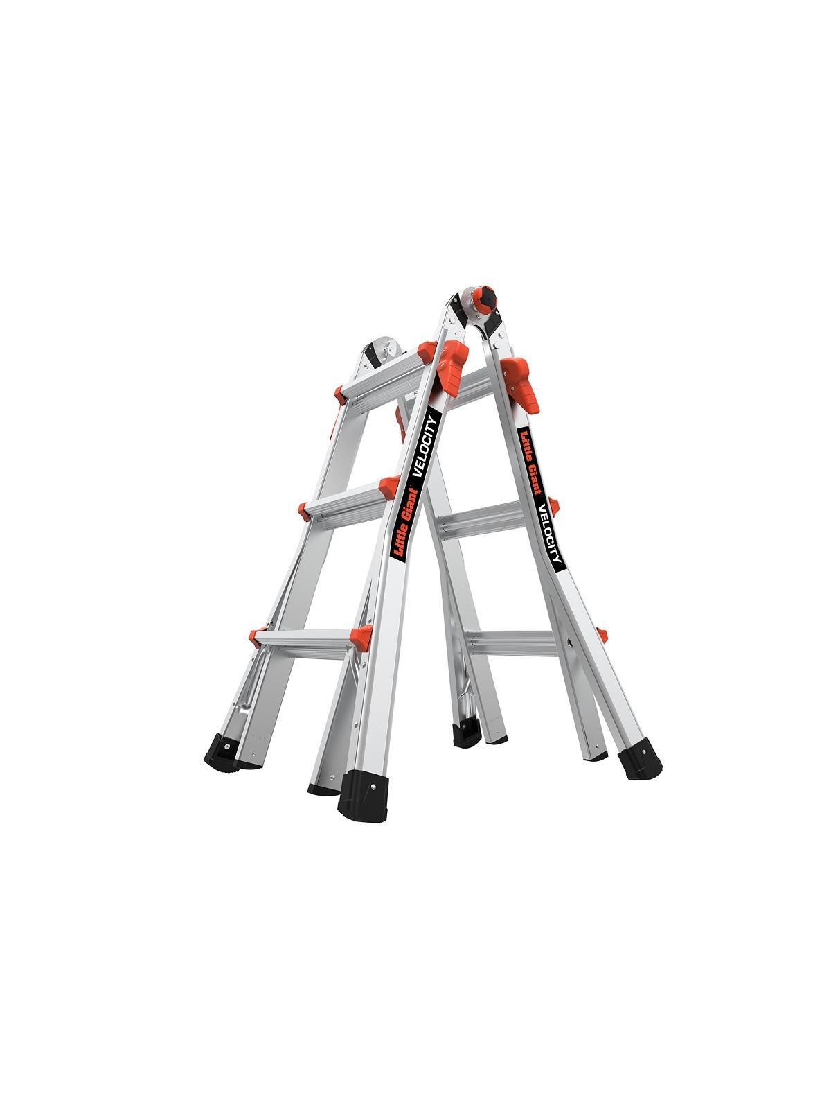 When it comes to articulating ladders, the Velocity™ by Little Giant is by far the best value for the money. Velocity™ features some of the latest patents and improvements in multi-use ladder design, Rock Lock® adjusters for fast, easy adjustment, Tip & Glide™ Wheels for easy transport (except for H15413-001), and wide rungs for improved balance, comfort and safety. Ladder works as an A-Frame, extension, staircase, 90-degree and even as trestle-and-plank scaffolding system. Use the right ladder for the right job every time and avoid 95% of all ladder related safety issues. The Velocity™ Ladder meets all OSHA & ANSI standards for the Type IA-300 lb. rating. FOB Shipping Point.