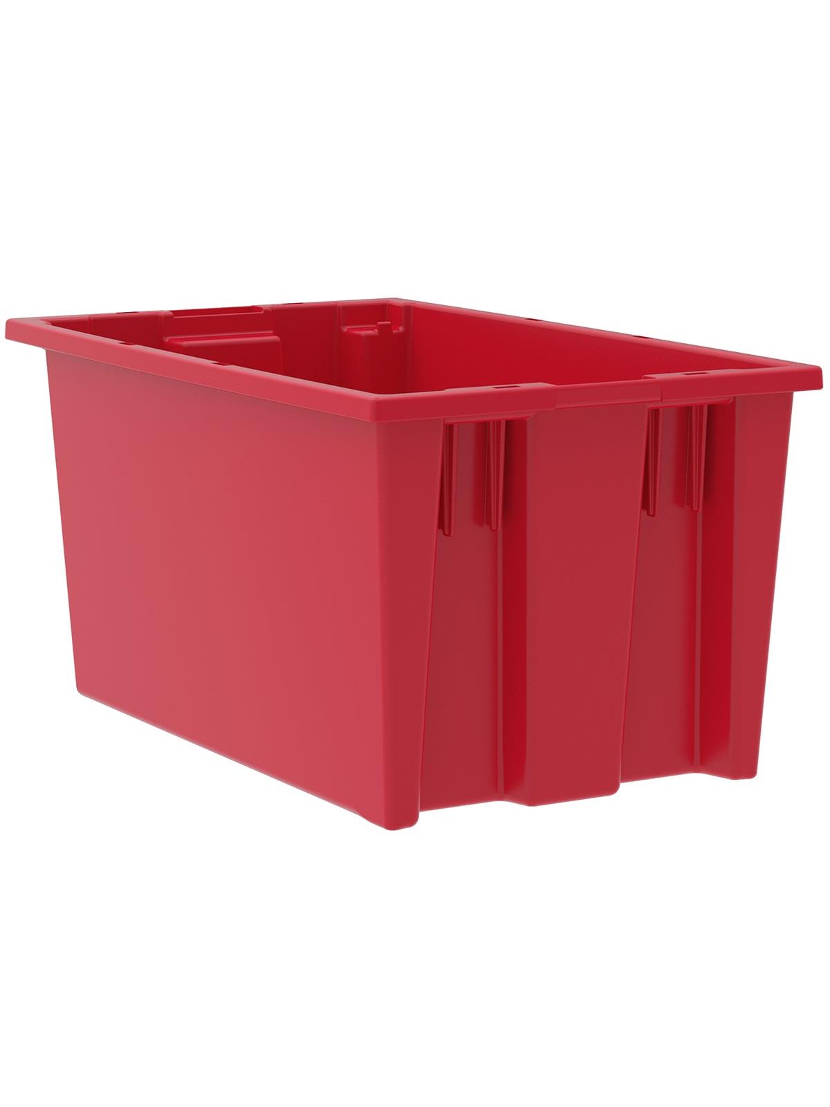 Heavy-duty construction provides a superior service life resulting in lower replacement costs than “budget-priced” totes. Smooth surfaces are easy to clean and are resistant to most solvents and chemicals. Available optional lids protect contents from dust and damage. Stackable with or without lids for shipping. When empty and without lids, totes nest for space saving storage. Available in Red, Blue, or Gray. Gray totes manufactured from FDA-approved materials. FOB Shipping Point.