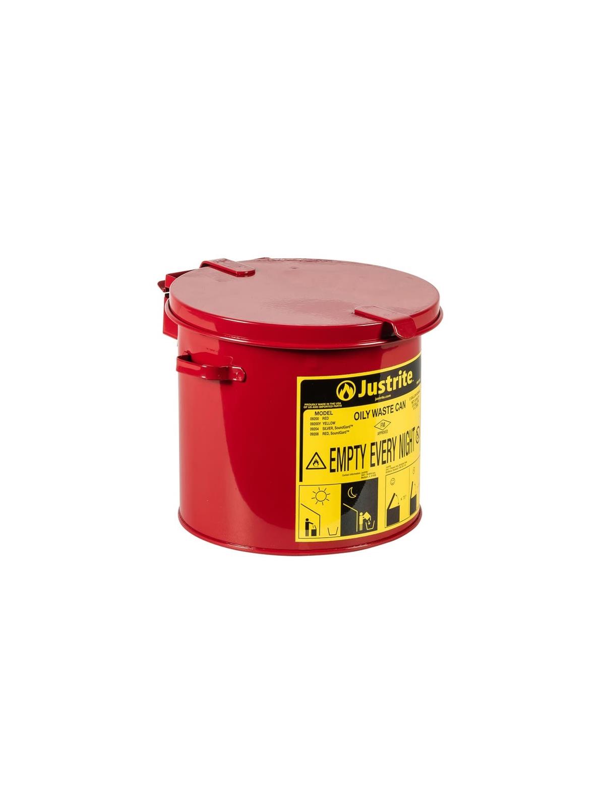 Oily Waste Cans are essential wherever solvent soaked rags and wipes are used. Durable galvanized steel body with carrying handle has a self-closing cover that stays closed when not in use to isolate contents from fire sources and limits oxygen to prevent spontaneous combustion. Raised, flow-through base encourages circulation of air to disperse heat and moisture. Silver color features SoundGard quiet-closing lid to lessen disruptive noise and provide a more comfortable working environment. OSHA compliant, FM approved. UL Listed (except for 2 gallon.) FOB Shipping Point.
