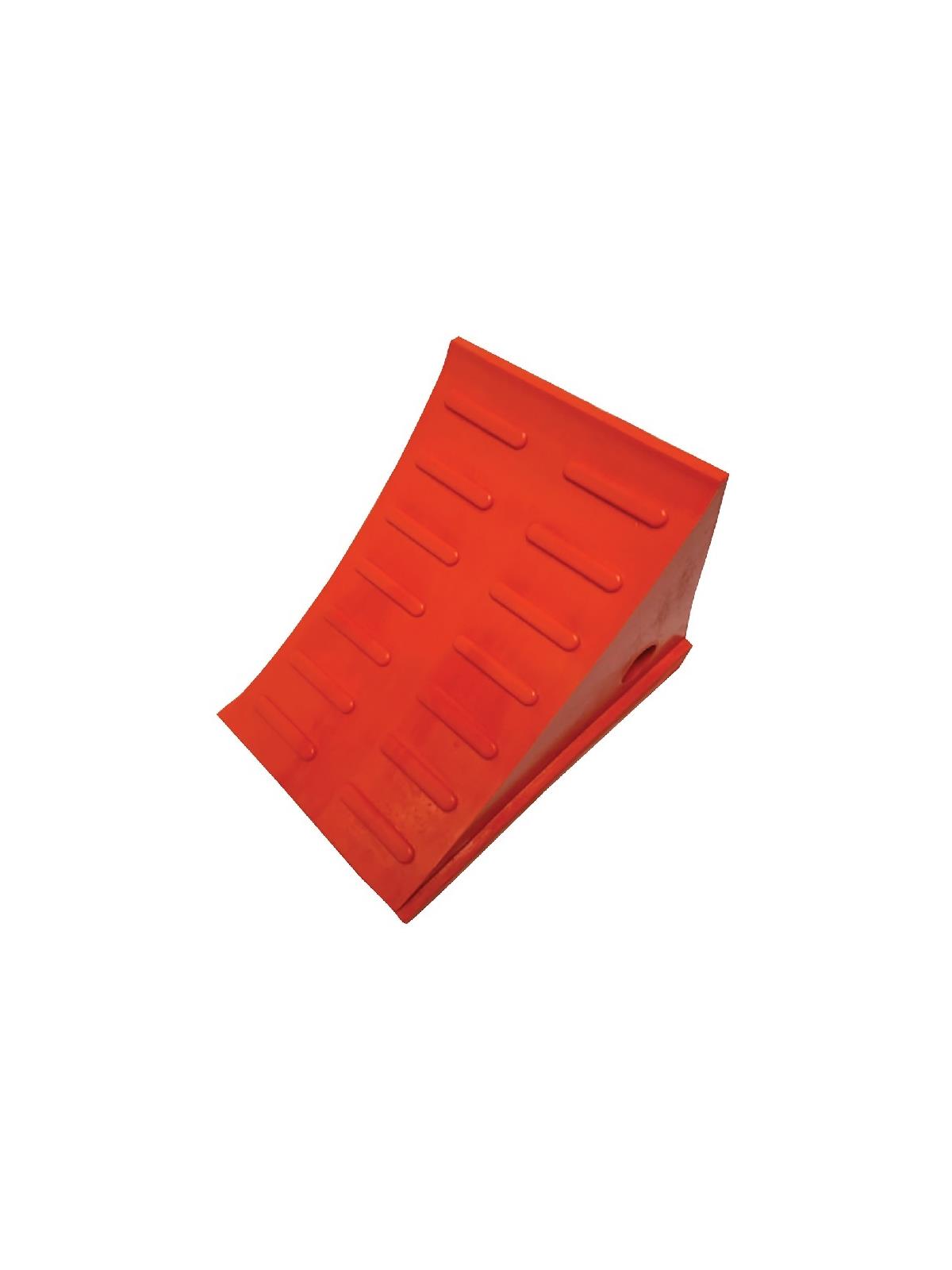 Bright orange for greater visibility. Incoming and outgoing drivers can easily see chock for added safety. Tread on chock face provides better grip. Extreme capacity models featured. FOB Shipping Point.