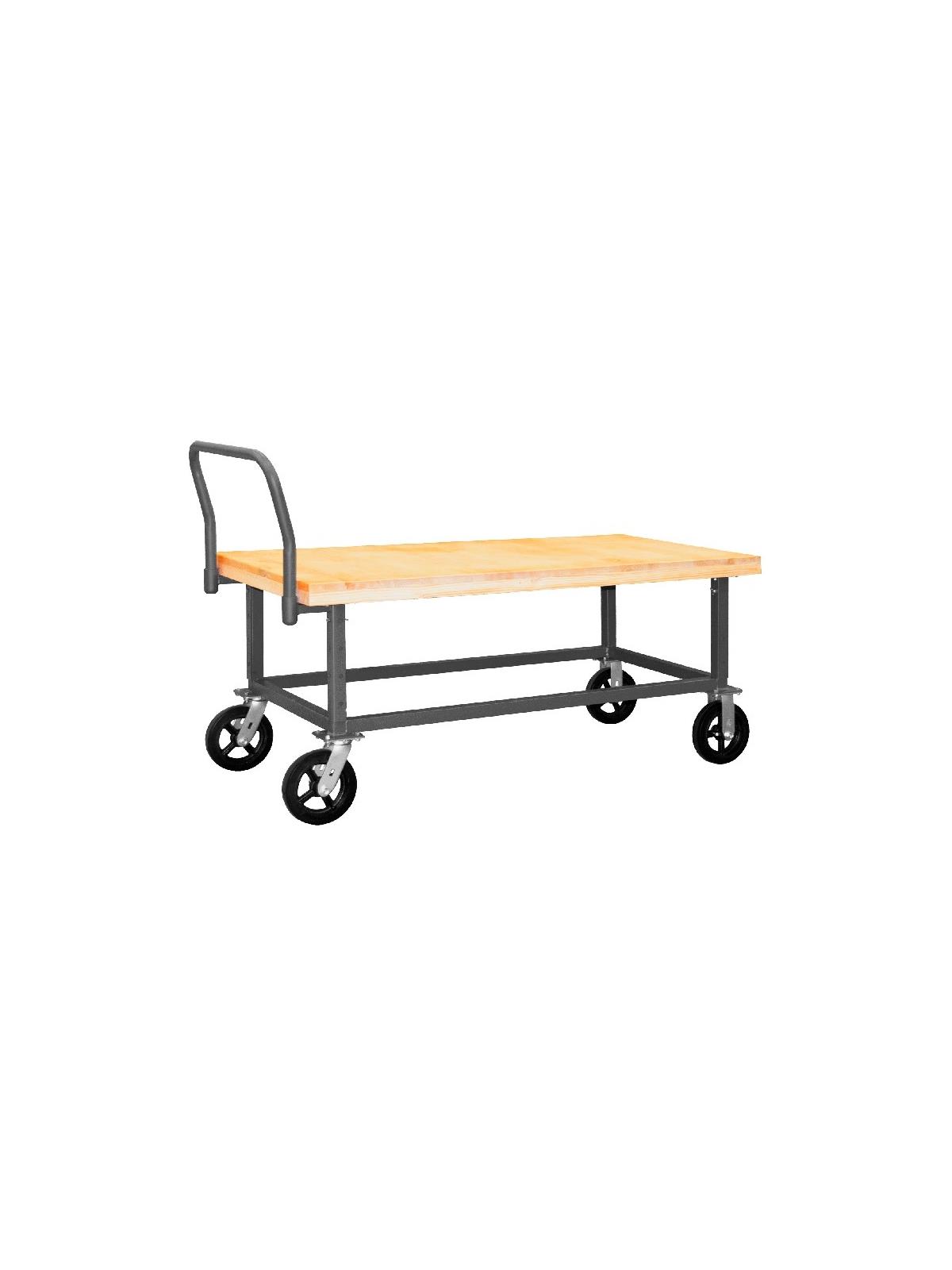 All welded heavy duty steel trucks feature heat treated hardwood surfaces with a removable, tubular offset handle that allows for easy mobility. 8 x 2" mold-on rubber casters (2 swivel and 2 rigid). Ships fully assembled and ready to use. Durable, textured gray powder coat finish. FOB Shipping Point.