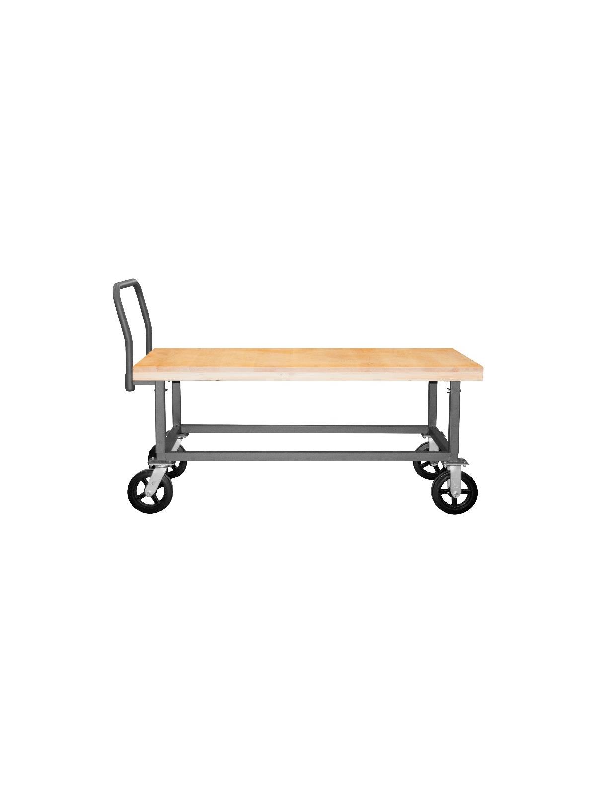 All welded heavy duty steel trucks feature heat treated hardwood surfaces with a removable, tubular offset handle that allows for easy mobility. 8 x 2" mold-on rubber casters (2 swivel and 2 rigid). Ships fully assembled and ready to use. Durable, textured gray powder coat finish. FOB Shipping Point.