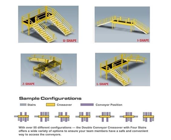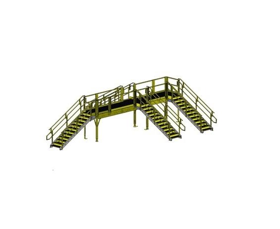 Crossover ladders allow workers a code compliant exit and egress plan within the building. This single kit of parts allows the crossover to be raised in increments of 2 inches up to 2 feet in height. The components in the crossover kit; railings, posts, and beams have been designed to meet OSHA standards and the stairs have been designed to meet IBC standards. The stairs in this kit of parts enables you to raise the crossover approximately three to four inches, if higher than this rise is required then a different set of stairs would be needed. Constructed with high-quality hot-dipped galvanized and powder coated steel, our customizable and configurable systems can be taken apart and put back together easily in a different location if needed and they're also designed, out of the box, to build a U-shaped, Z-shaped, L-shaped and I-shaped crossover based on your footprint-without extra parts or cost. FOB Shipping Point.
